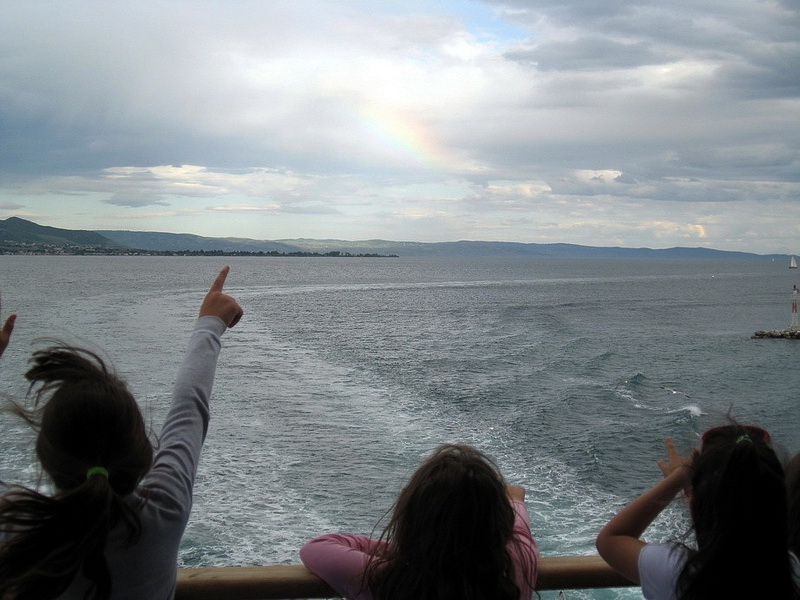 Δυο ώρες πλέει το καράβι μέσα στ’ απίθανα νερά του Παγασητικού ?κι αντίκρυ η πόλη περιμένει σαν ζωγραφιά καμωμένη απ’ την ίριδα. Κάτι αραιά σύννεφα όλο ψηλώνουν, ψηλώνουν, σιγανά, και διαλύονται ?καπνοί που δεν ξέρεις από πού ανεβαίνουν, μα ξέρεις πως είναι λευκοί κι ανάλαφροι σαν το τίποτα.