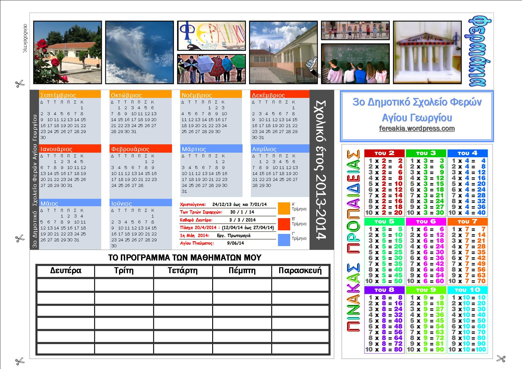 Σελιδοδείκτης, ημερολόγιο, πρόγραμμα μαθημάτων, πίνακας προπαίδειας. Όλα σε ένα!